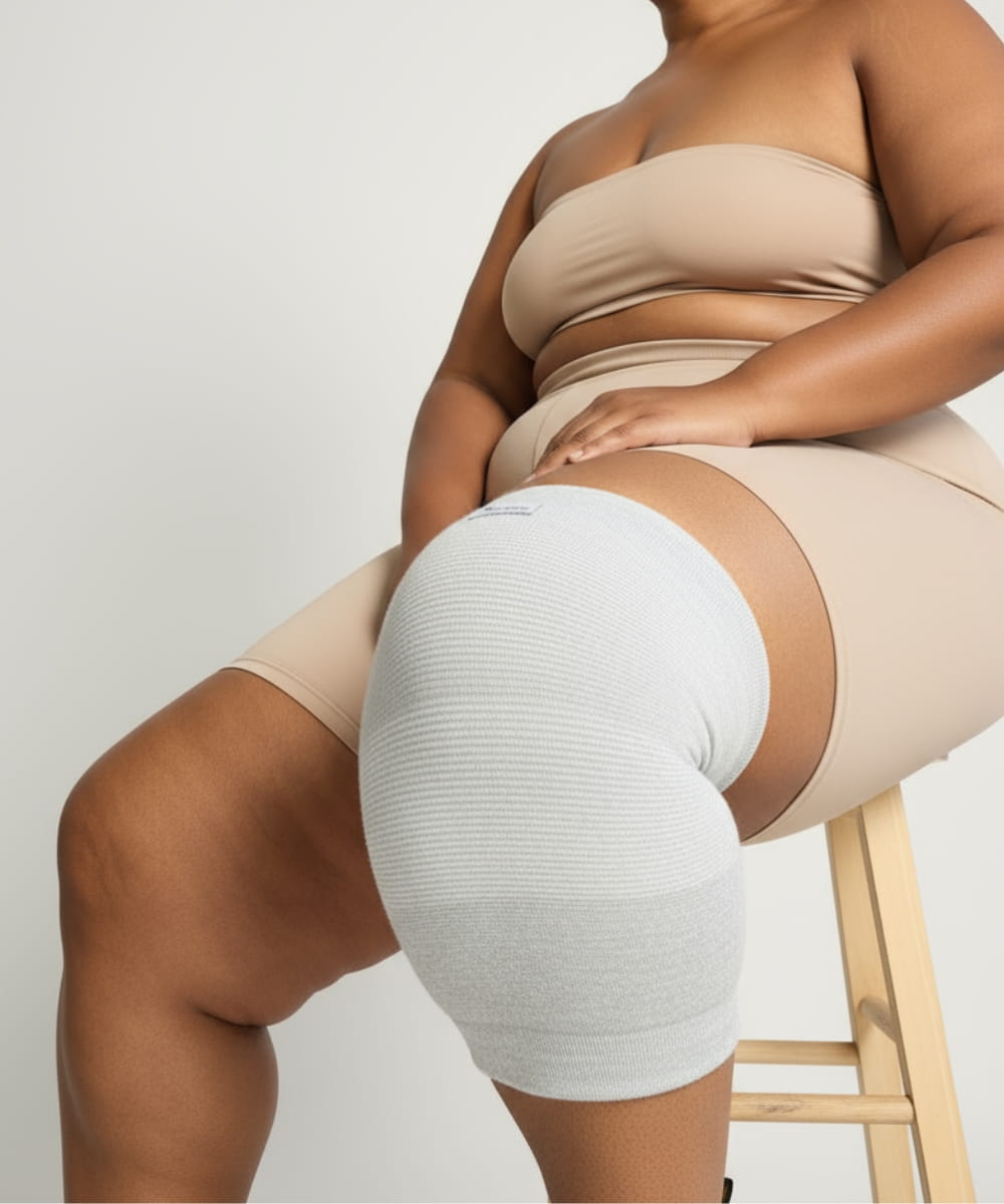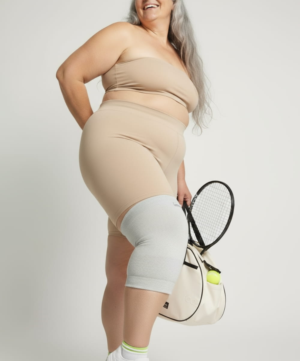 De fleste knæbandager findes kun i falske "XL" størrelser og er lavet af kløende materialer, der graver sig ind, ruller ned og afskærer blodcirkulationen.